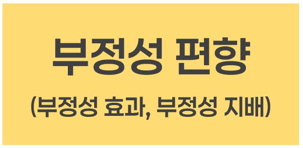 - 부정성 효과 또는 부정성 지배라고도 부르는 부정성 편향(Negativity Bias)이란 인간이 긍정적인 정보보다 부정적인 정보를 더 강하게 인식하고, 이에 더 크게 영향을 받는 심리적 경향을 의미함