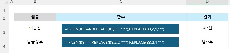- 주어진 엑셀 함수는 조건에 따라 문자열의 일부를 숨기거나 대체하는 작업을 수행